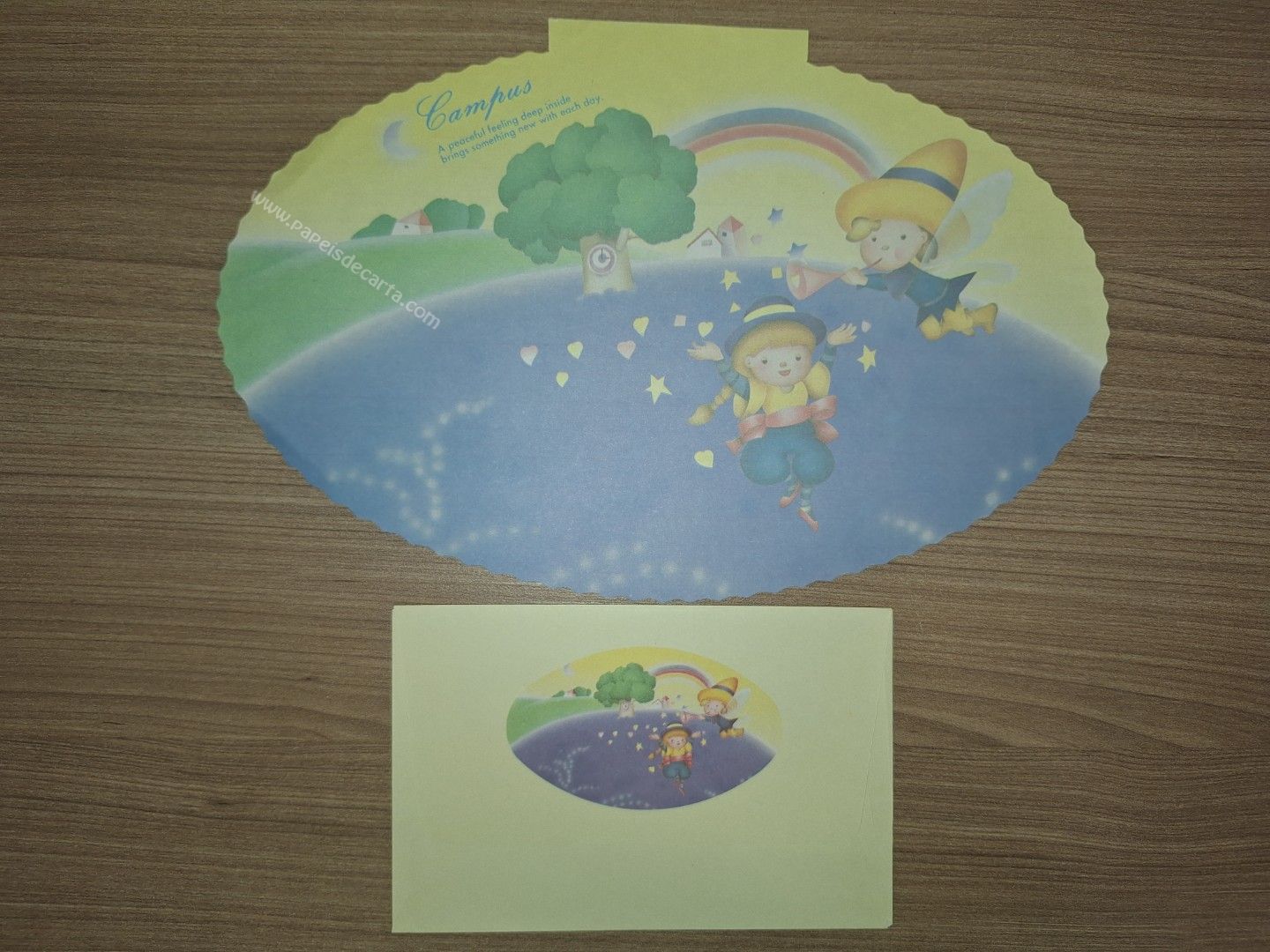 Conjunto de papel de carta antigo com 1 folha e 1 envelope. Tamanho médio.