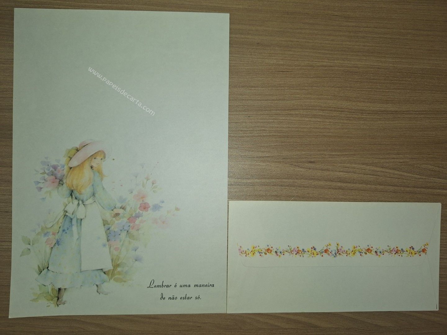 Conjunto de papel de carta antigo com 1 folha e 1 envelope. Tamanho médio.