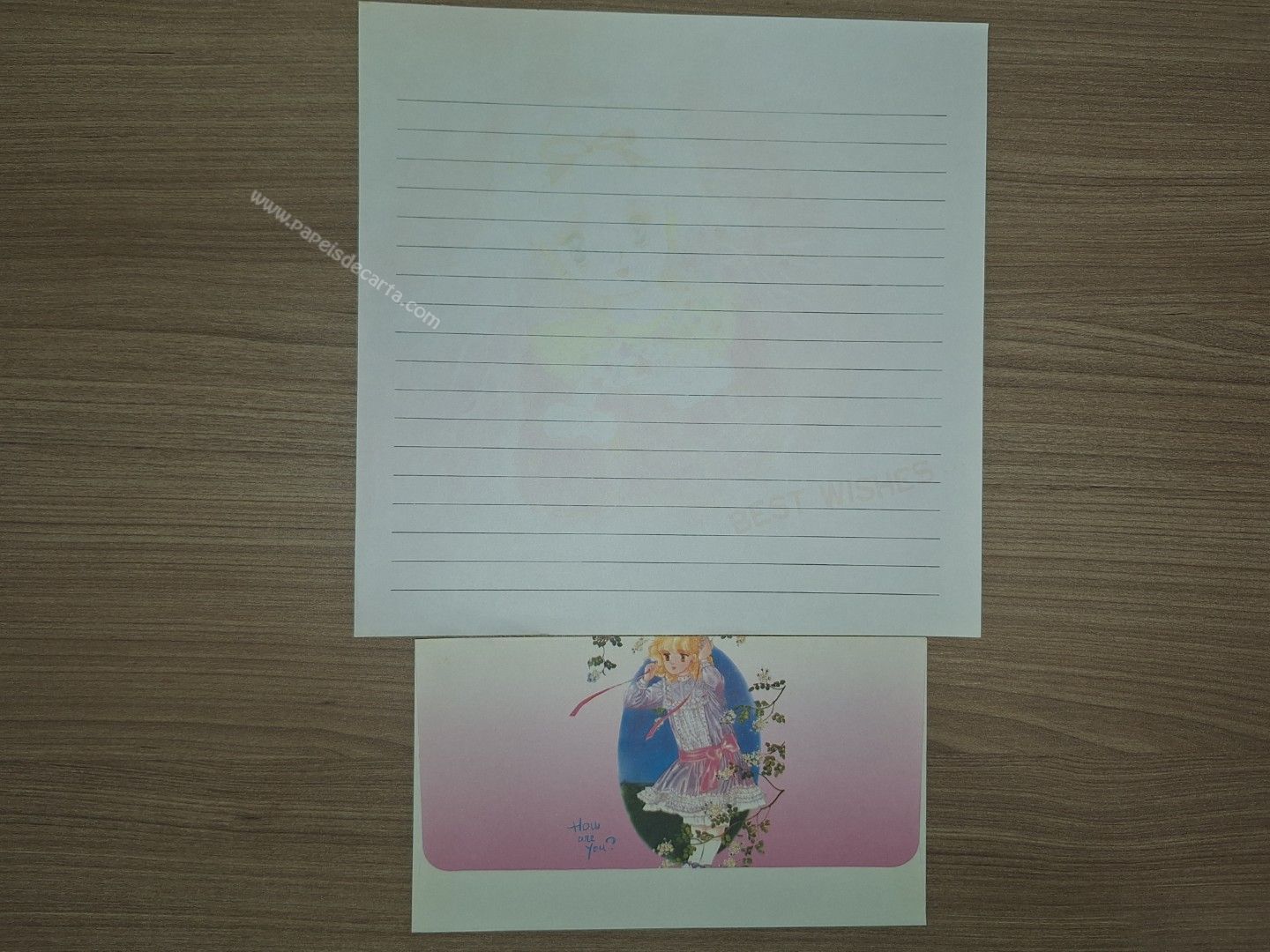 Conjunto de papel de carta antigo com 1 folha e 1 envelope. Tamanho médio.