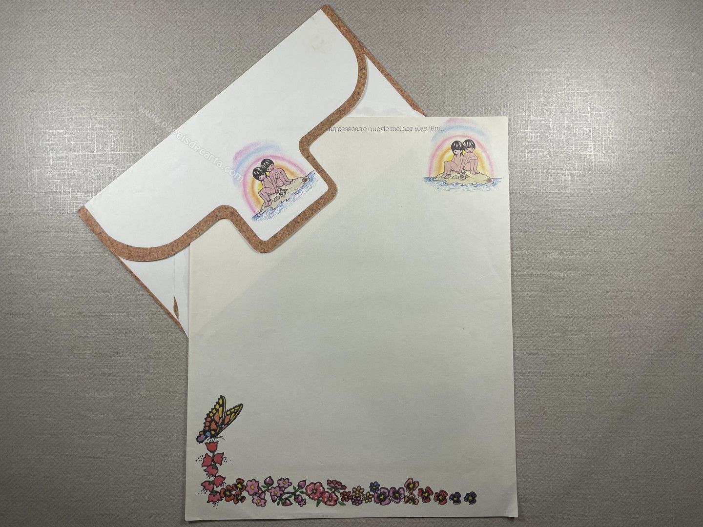 Conjunto de papel de carta antigo com 1 folha e 1 envelope. Tamanho um pouco maior que o médio.