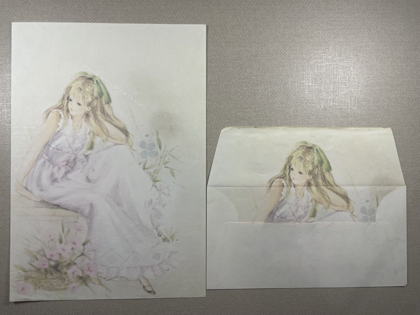 Conjunto de papel de carta antigo com 1 folha e 1 envelope. Tamanho um pouco maior que o médio. **ENVELOPE COM AVARIA. VER FOTO. **