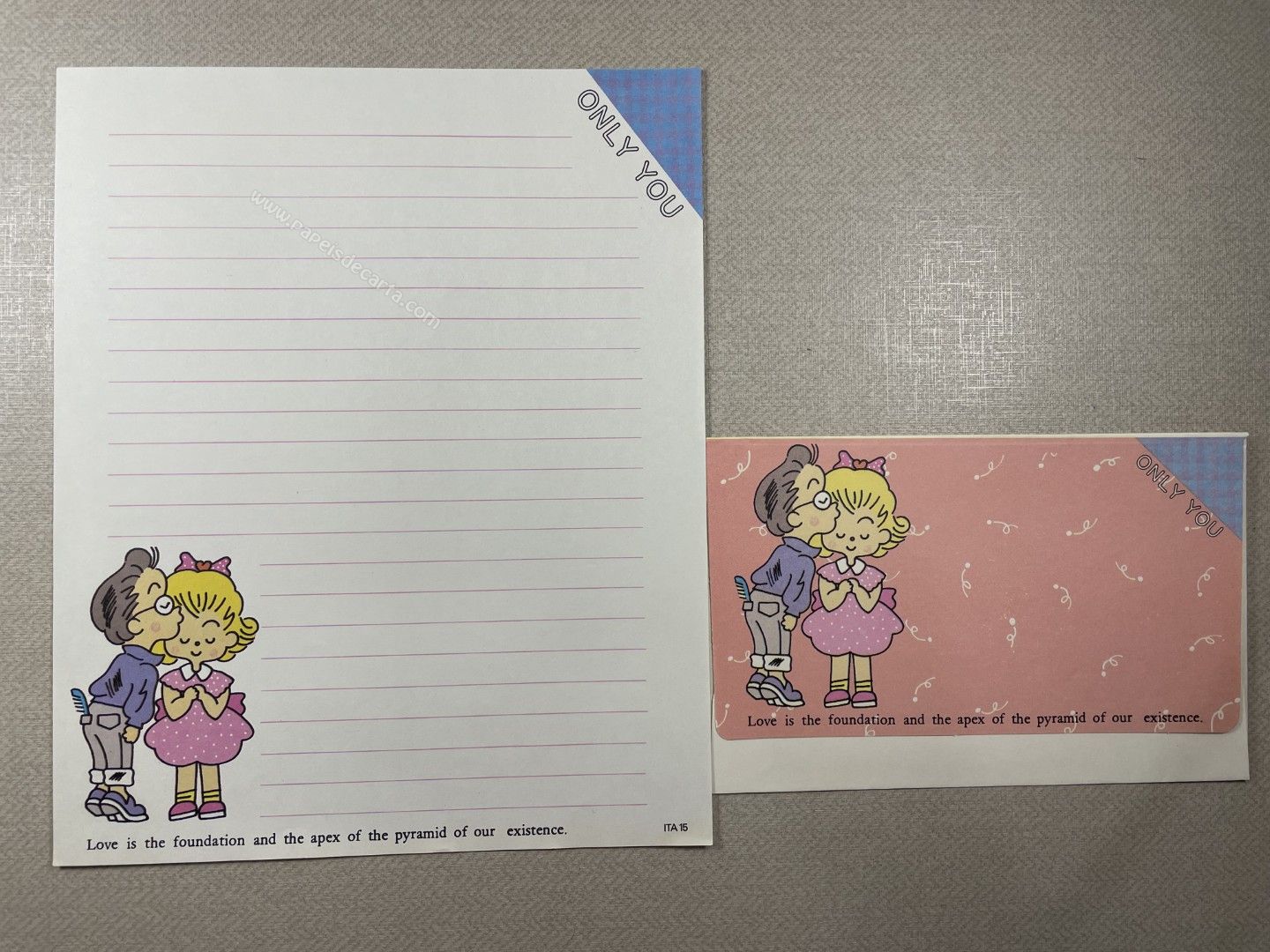 Conjunto de papel de carta antigo com 1 folha e 1 envelope. Tamanho médio.