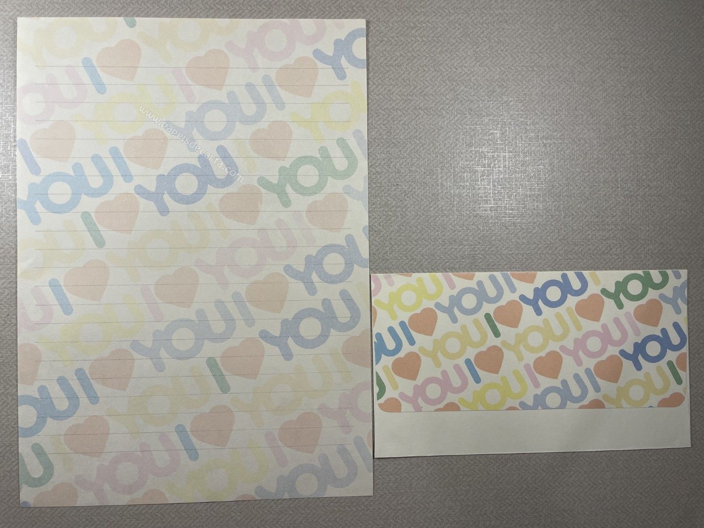 Conjunto de papel de carta antigo com 1 folha e 1 envelope. Tamanho médio.