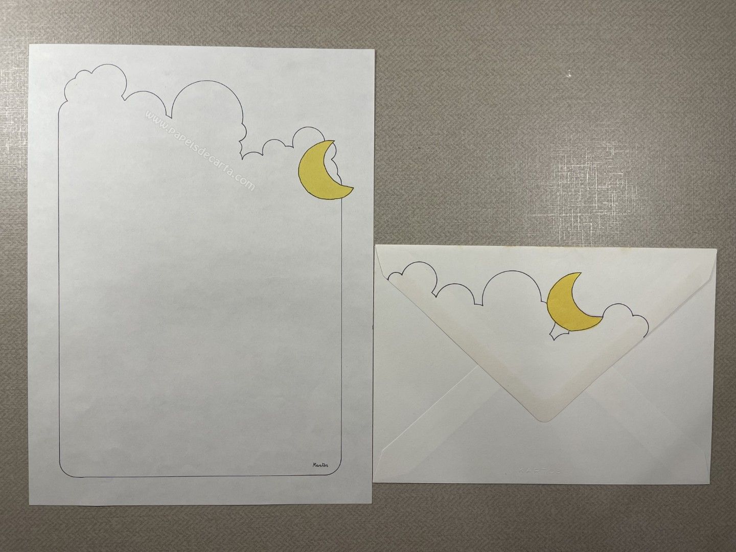 Conjunto de papel de carta antigo com 1 folha e 1 envelope. Tamanho médio.