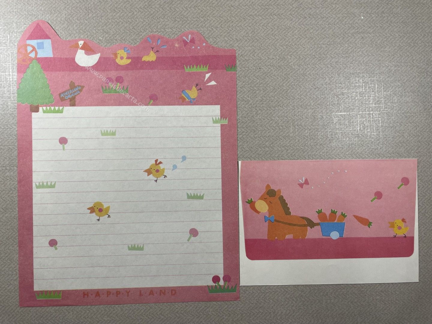 Conjunto de papel de carta antigo com 1 folha e 1 envelope. Tamanho médio.