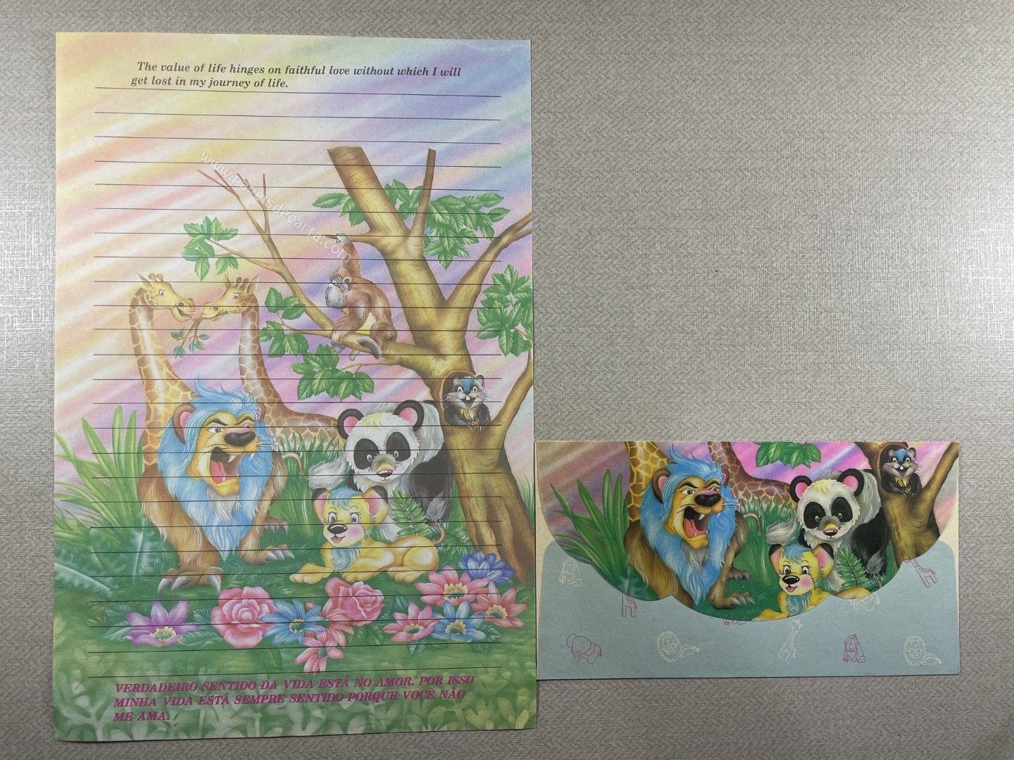 Conjunto de papel de carta antigo com 1 folha e 1 envelope. Tamanho um pouco maior que o médio.