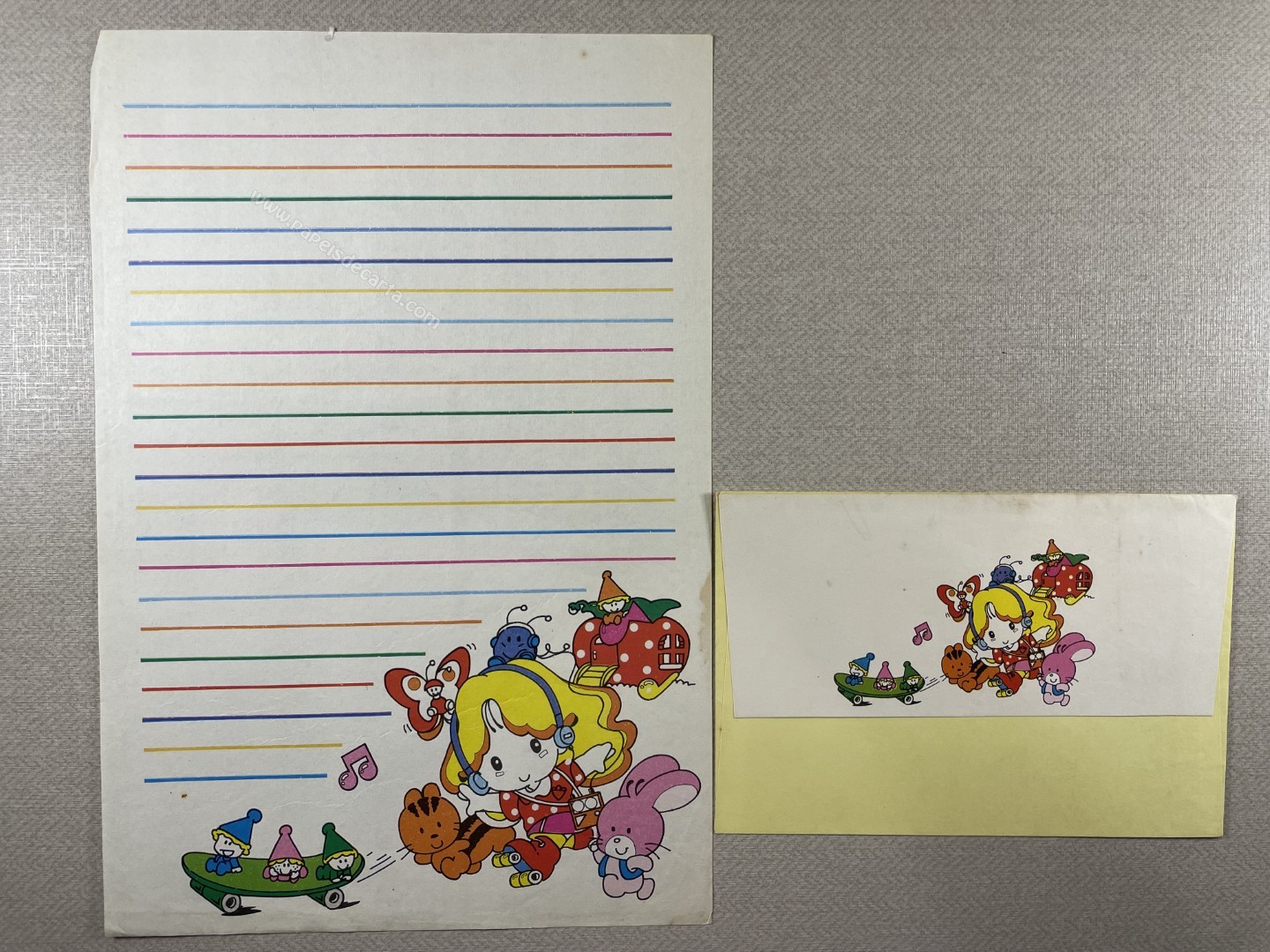 Conjunto de papel de carta antigo com 1 folha e 1 envelope. Tamanho médio.