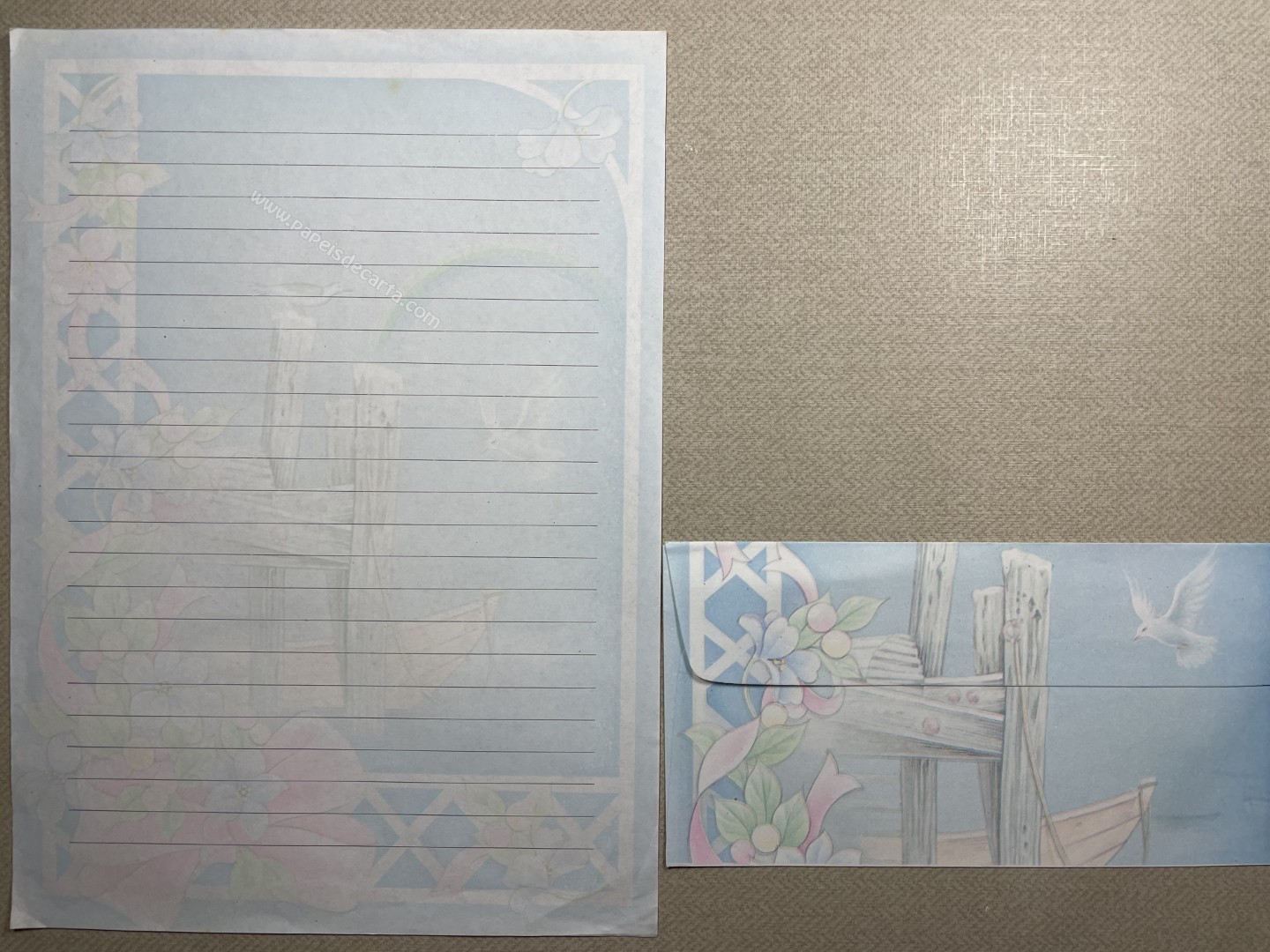 Conjunto de papel de carta antigo com 1 folha e 1 envelope. Tamanho um pouco maior que o médio.