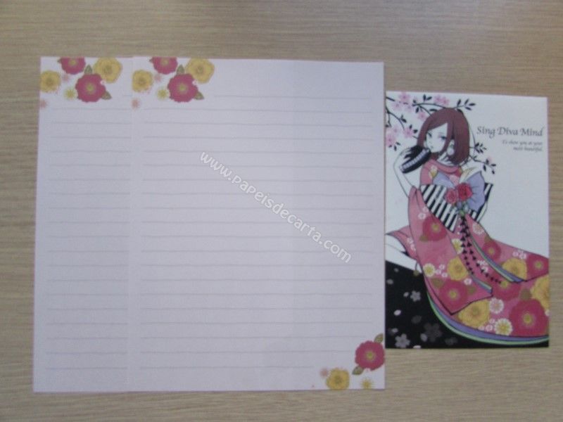 Conjunto importado, de papel de carta com 2 folhas iguais e 1 envelope da coleção Coleção Girls Collection.