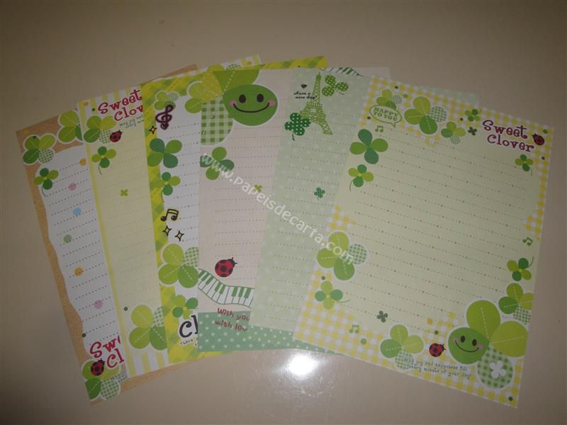 Conjunto importado, de papel de carta com 6 folhas diferentes do Sweet Clover.
