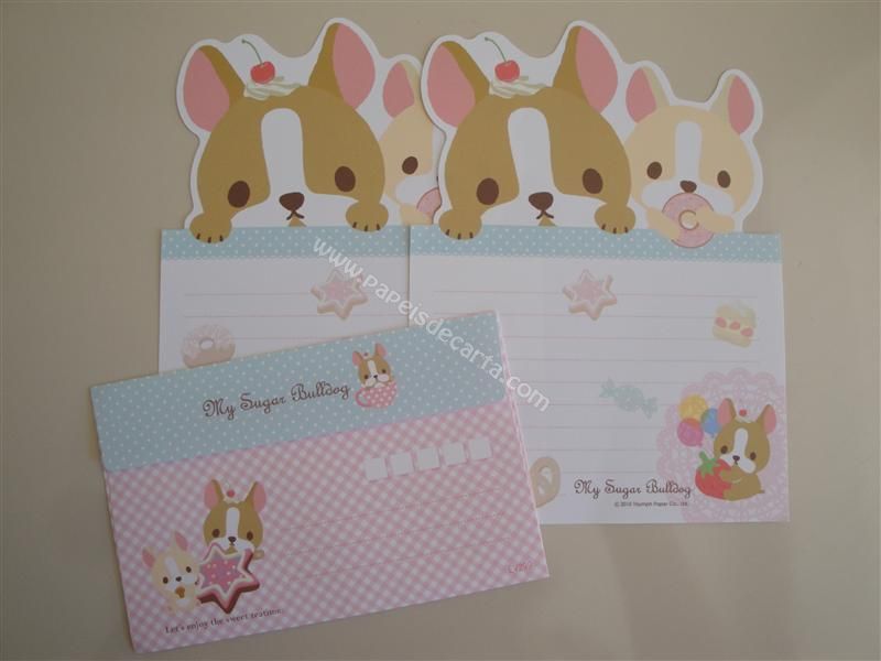 Conjunto importado, de papel de carta com 2 folhas iguais e 1 envelope do My Sugar Bulldog.