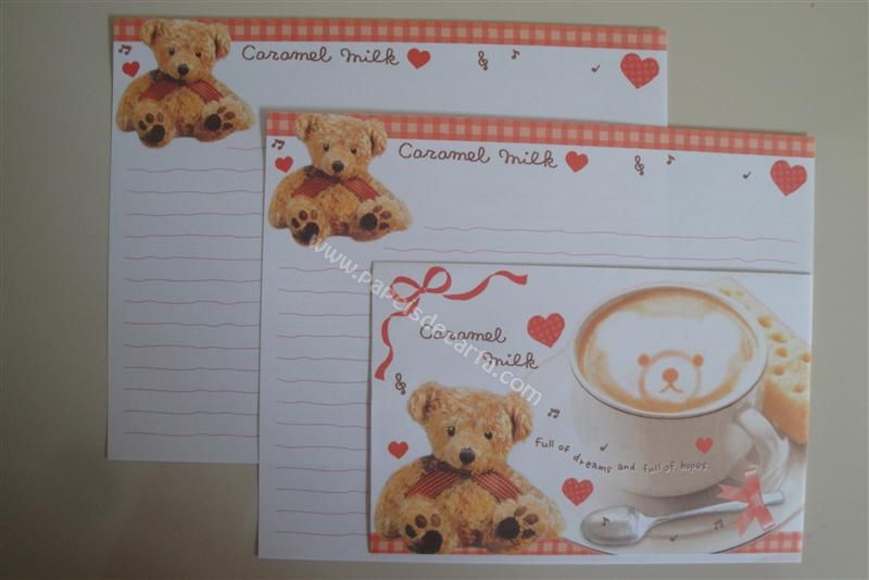 Conjunto importado, de papel de carta com 2 folhas iguais e 1 envelope do Caramel Milk.