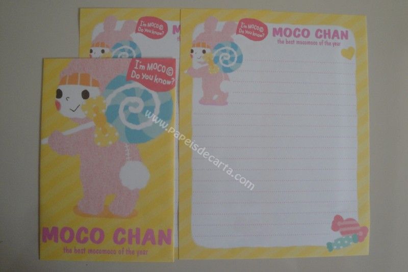Conjunto importado, de papel de carta com 2 folhas iguais e 1 envelope do Moco Chan.