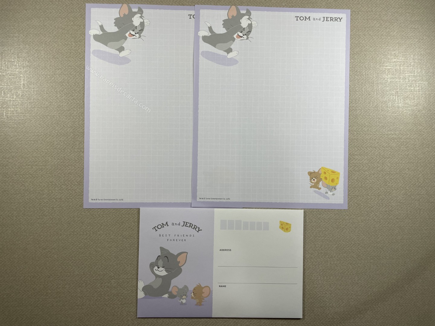 Conjunto importado, de papel de carta com 2 folhas e 1 envelope do Tom & Jerry.