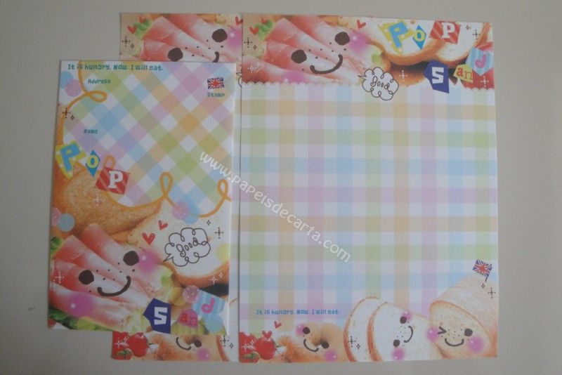 Conjunto importado, de papel de carta com 2 folhas iguais e 1 envelope do Pop Bagel da Q-Lia.