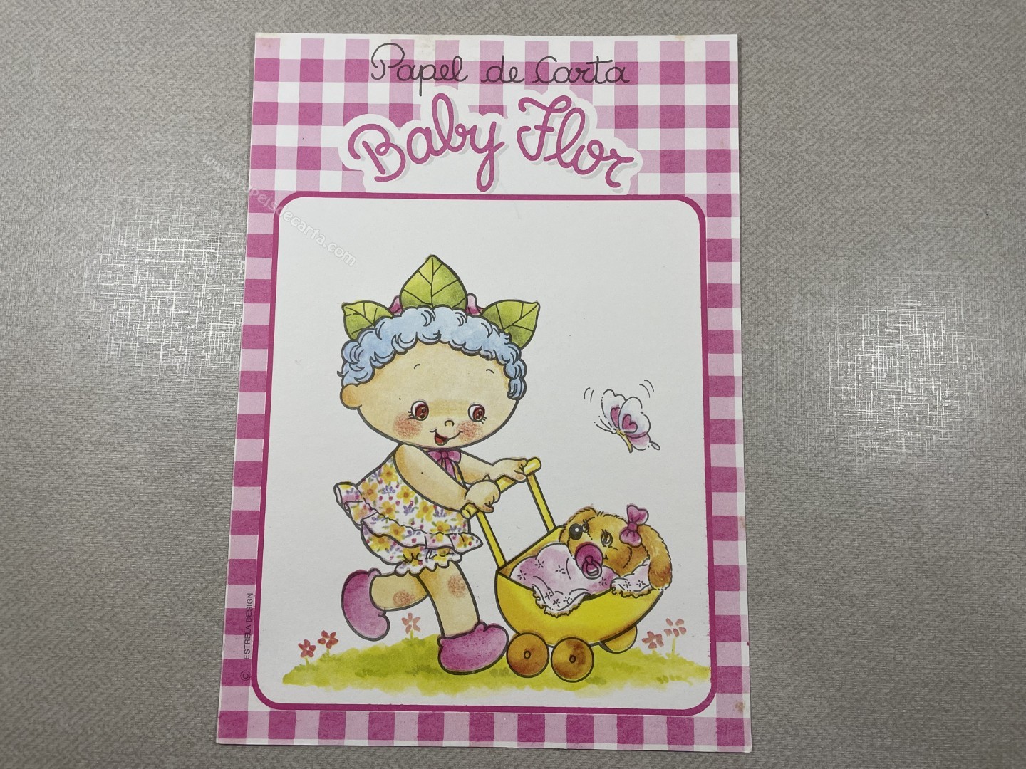 Capinha de papel de carta antigo Baby Flor Rosa - Coleção Palacios Line.