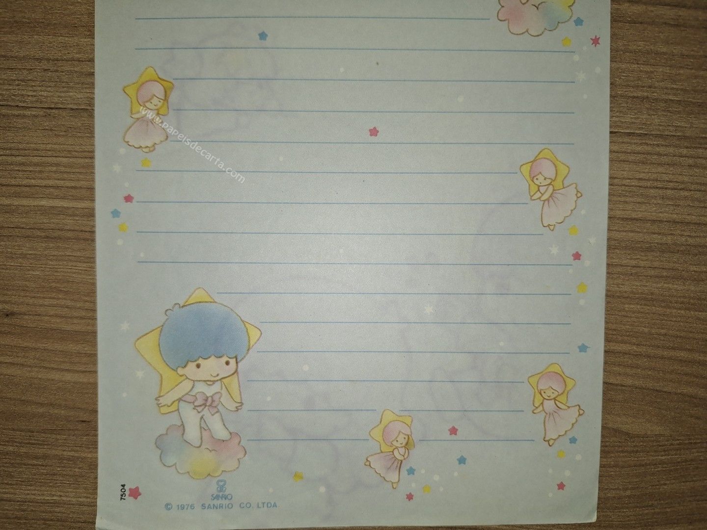 Papel de carta antigo, dos Little Twin Stars, tamanho médio. ** O PAPEL POSSUI UMA IMAGEM DE UMA MARCA`ÁGUA. VER FOTO.