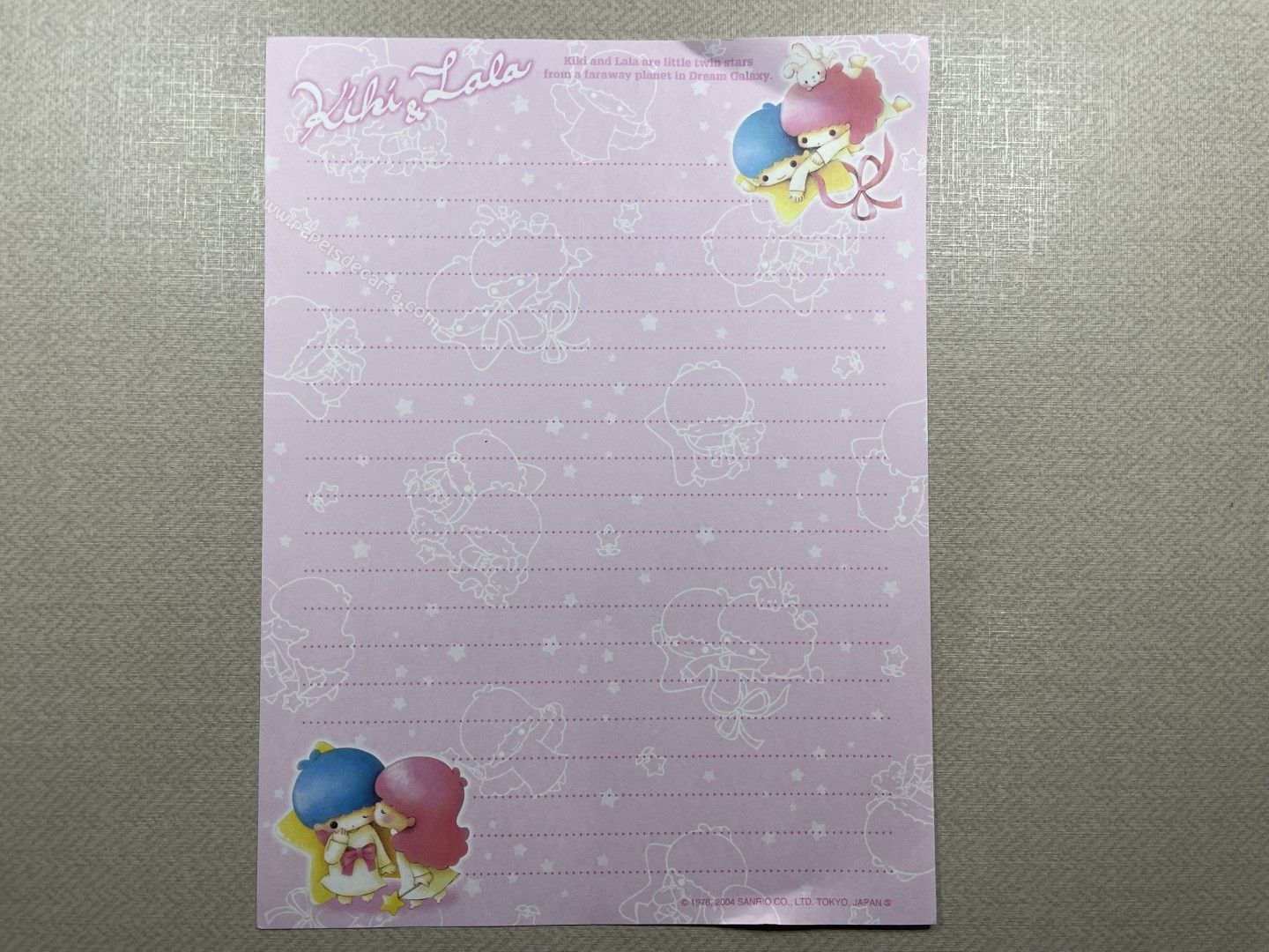 Papel de carta importado, dos Little Twin Stars. Tamanho médio. ** O PAPEL ESTÁ MEIO AMASSADINHO.**