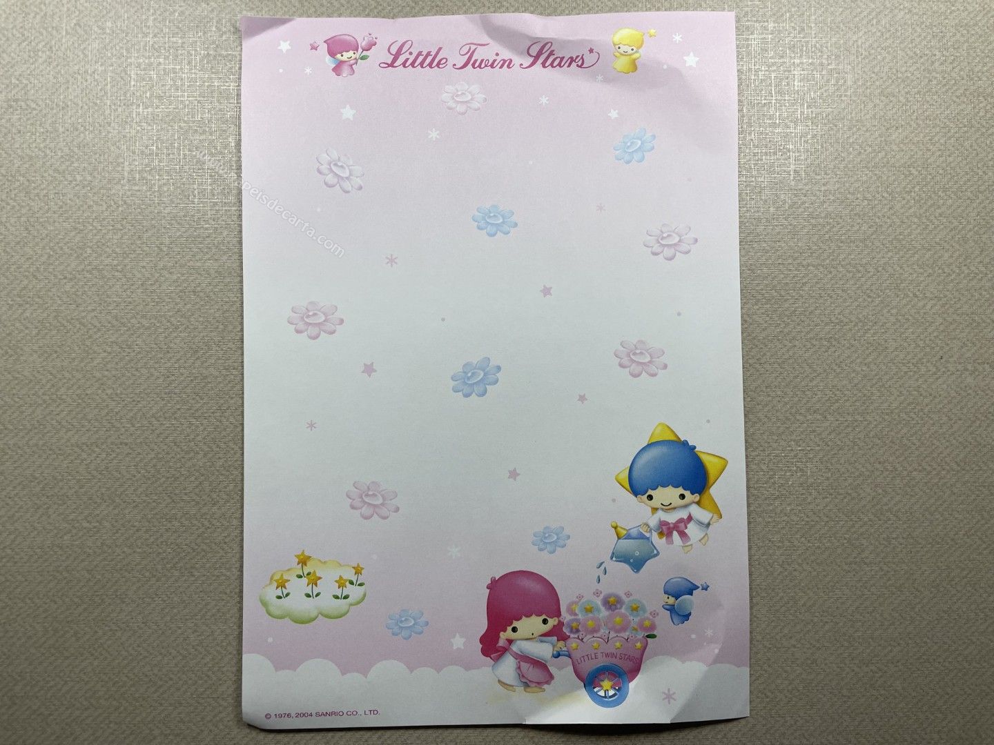 Papel de carta importado, dos Little Twin Stars. Tamanho médio. ** O PAPEL ESTÁ MEIO AMASSADINHO.**