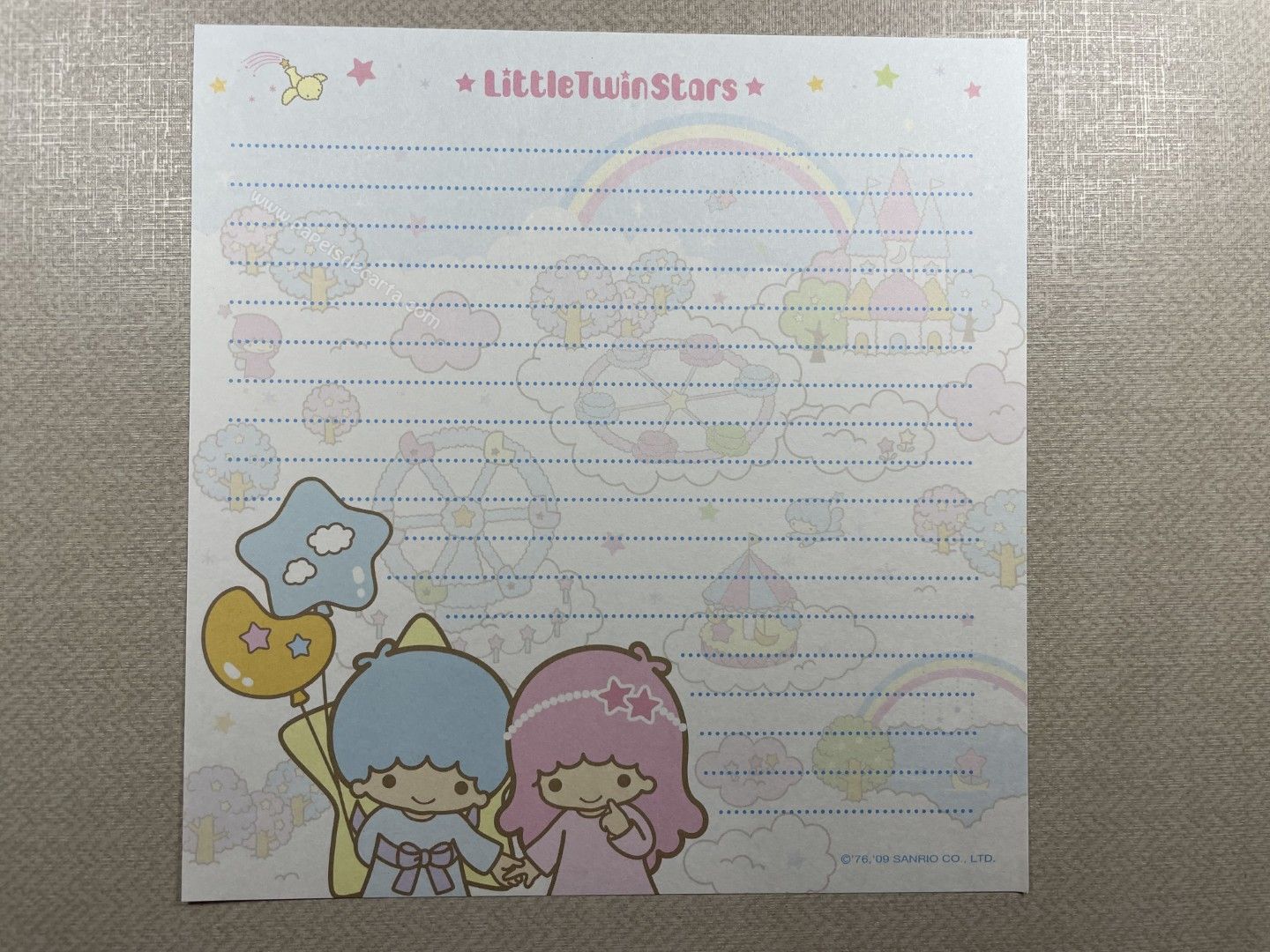 Papel de carta importado, dos Little Twin Stars. Tamanho médio.