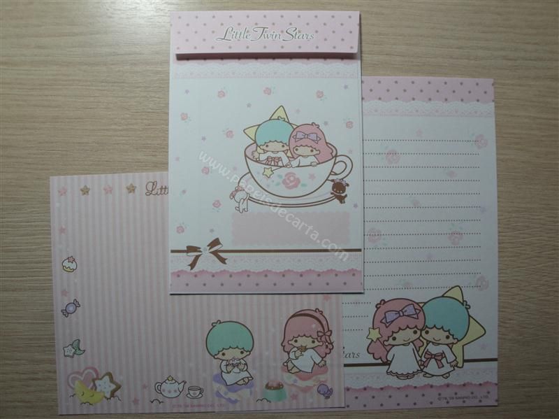 Conjunto importado, de papel de carta com 2 folhas diferentes e 1 envelope dos Little Twin Stars.