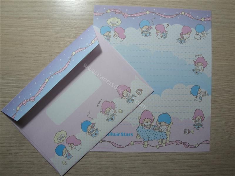 Conjunto importado, de papel de carta com 1 folha e 1 envelope dos Little Twin Stars.