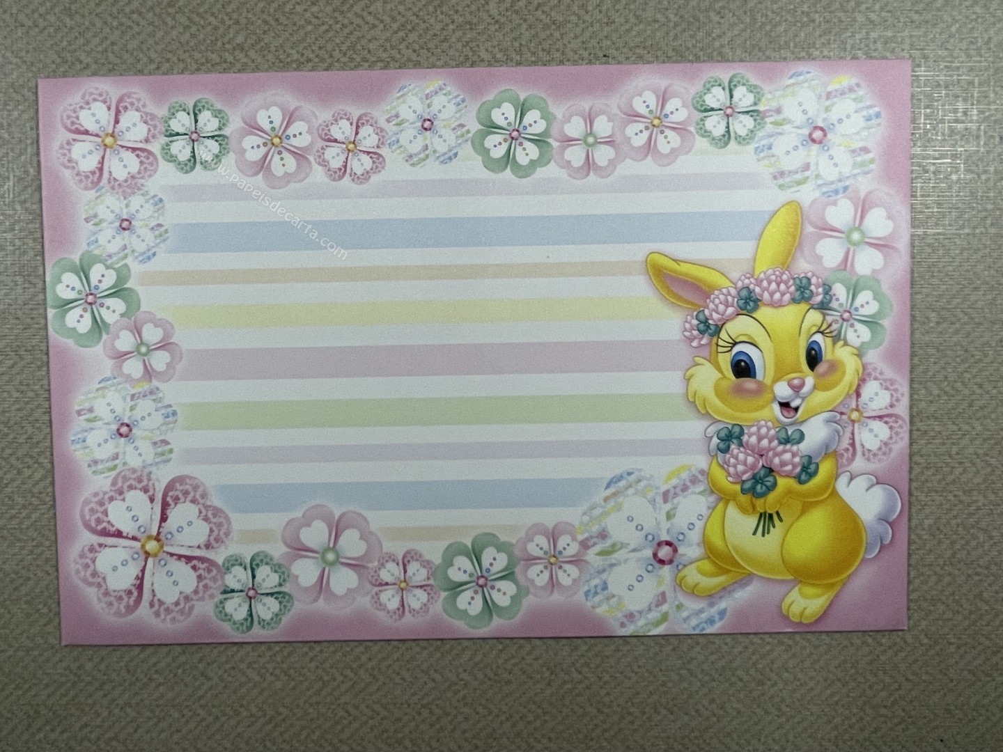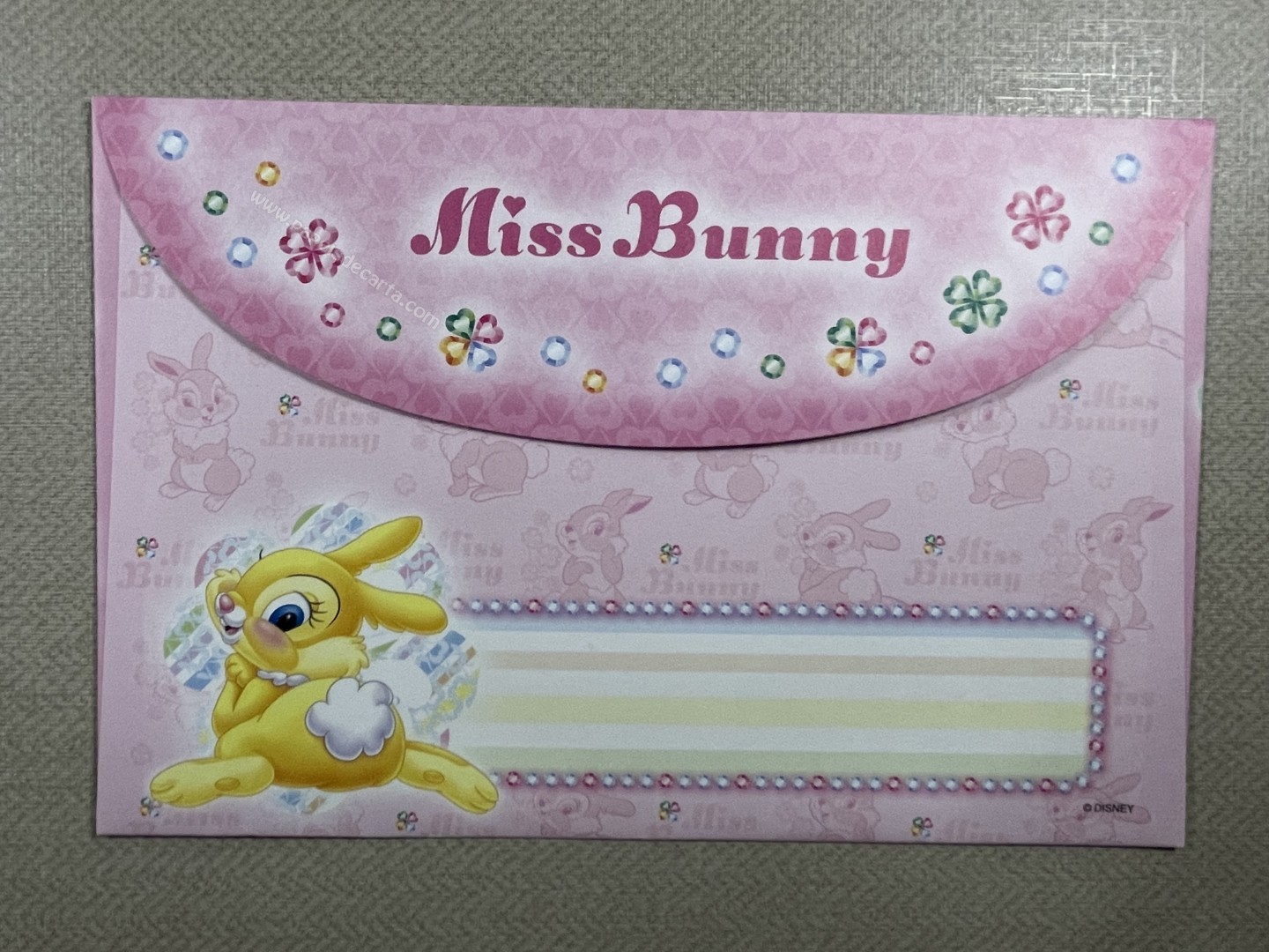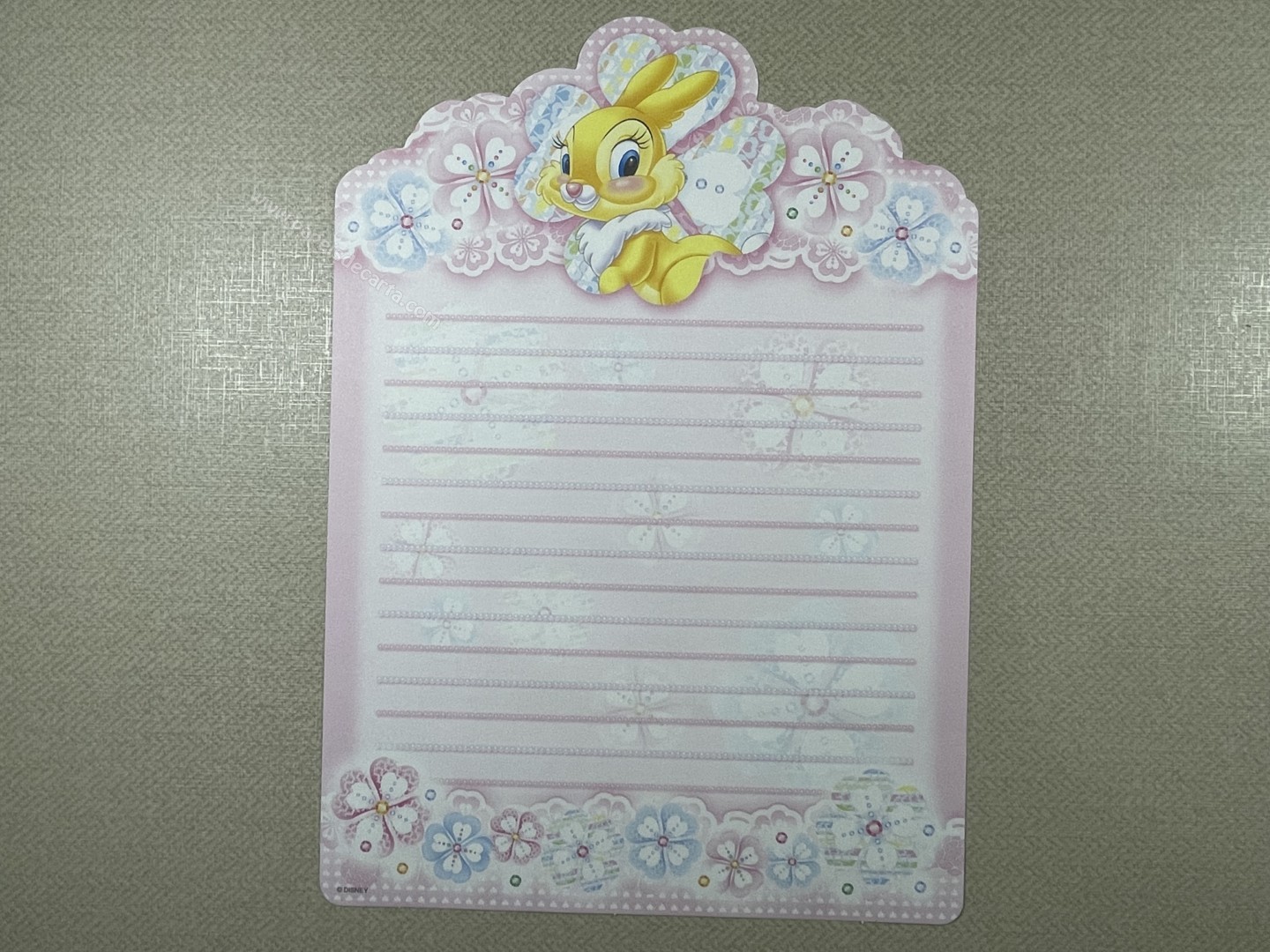 Conjunto importado, de papel de carta da Miss Bunny, com 1 folha e 1 envelope, da Disney.