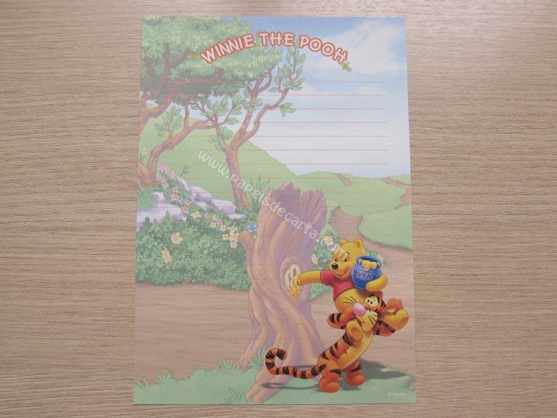 Conjunto importado, de papel de carta do Pooh, tamanho médio, com 1 folha e 1 envelope, da Disney.