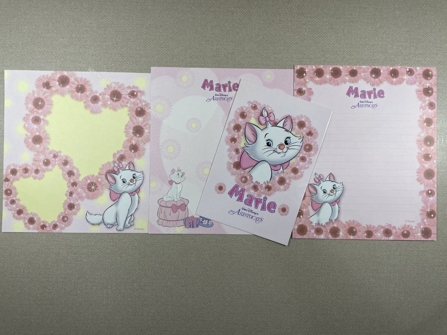 Conjunto importado, de papel de carta da The Aristocats (Marie), com 3 folhas diferentes e 1 envelope, tamanho médio, da Disney.