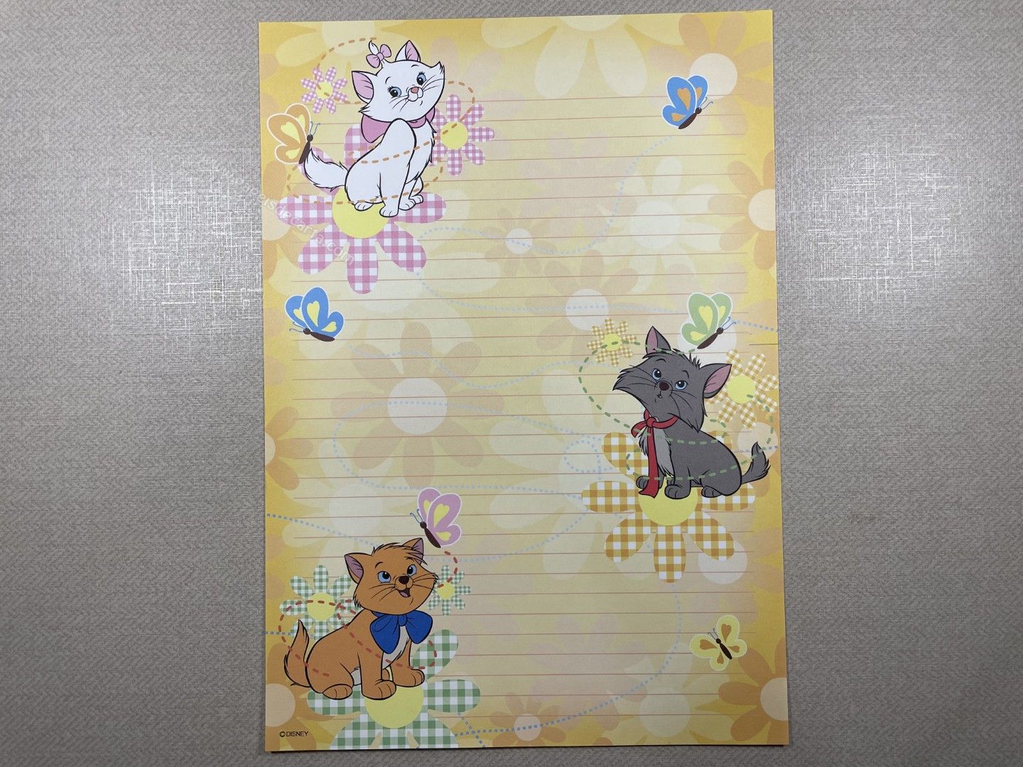 Papel de carta da The Aristocats (Marie), com 1 folha um pouco maior que o médio (18cm larg X 26cm alt) da Disney.