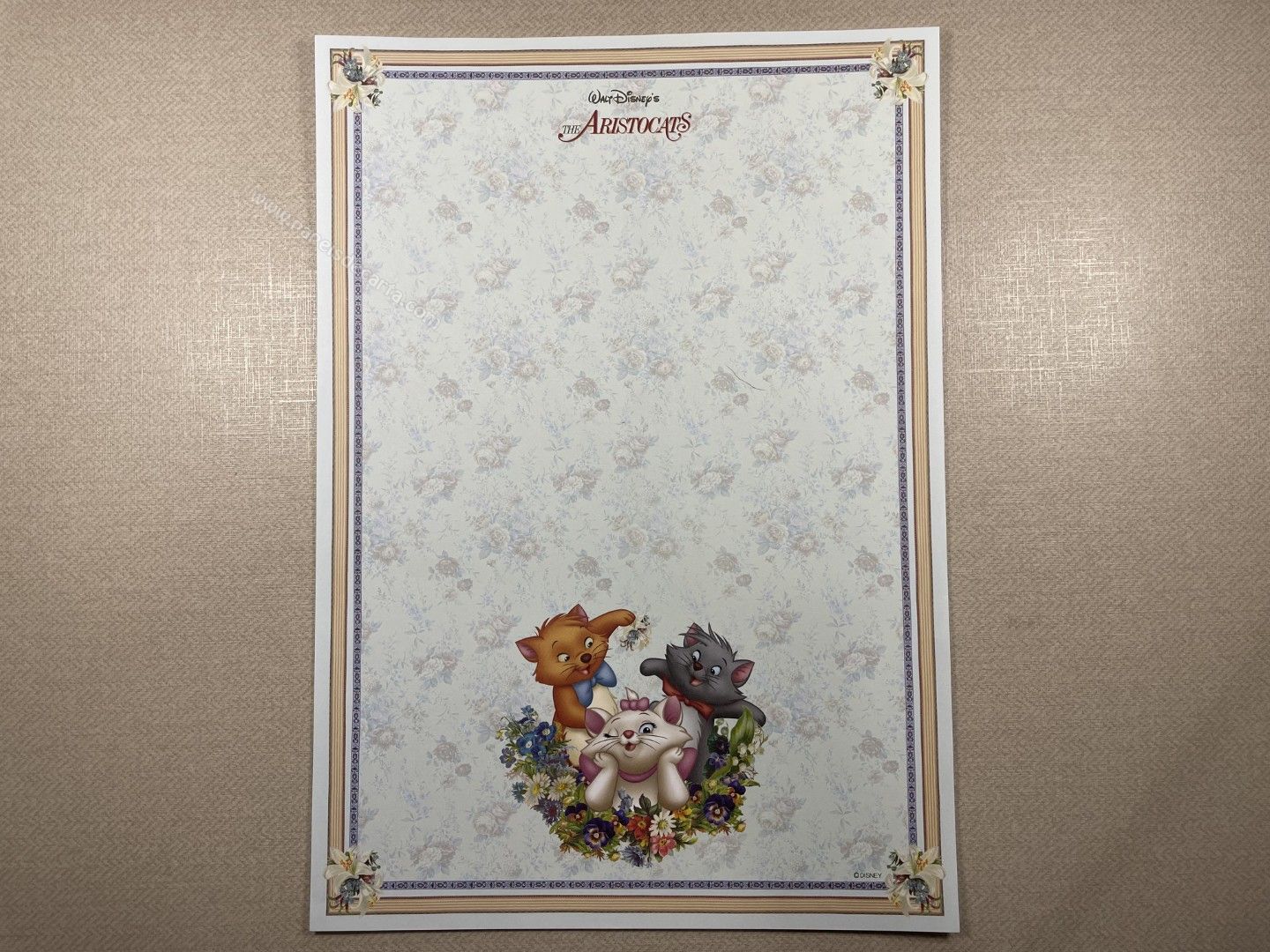 Papel de carta da The Aristocats (Marie), com 1 folha grande (21cm larg X 30cm alt) da Disney.