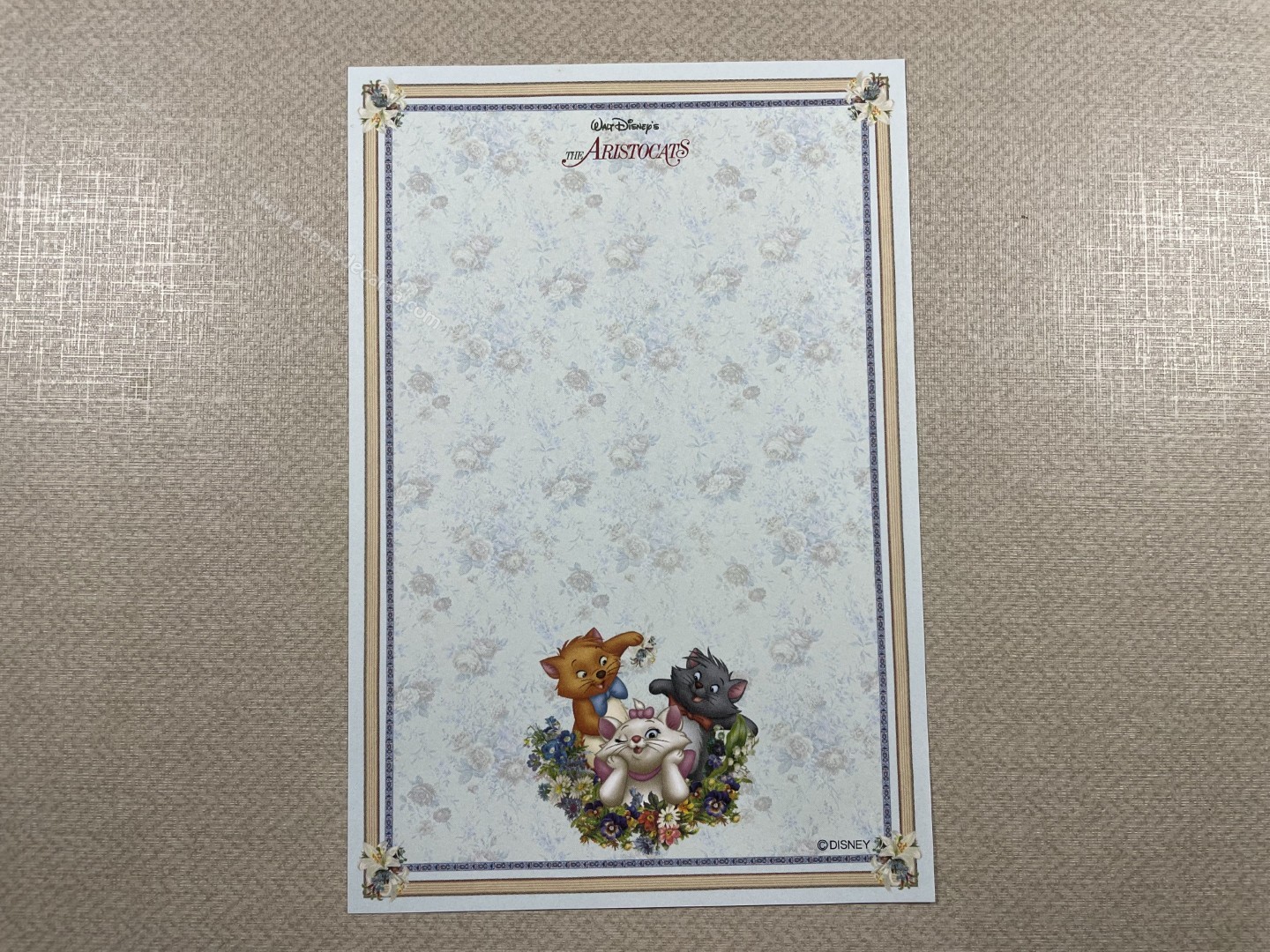 Papel de carta da The Aristocats (Marie), com 1 folha pequena (10cm larg X 15cm alt) da Disney.