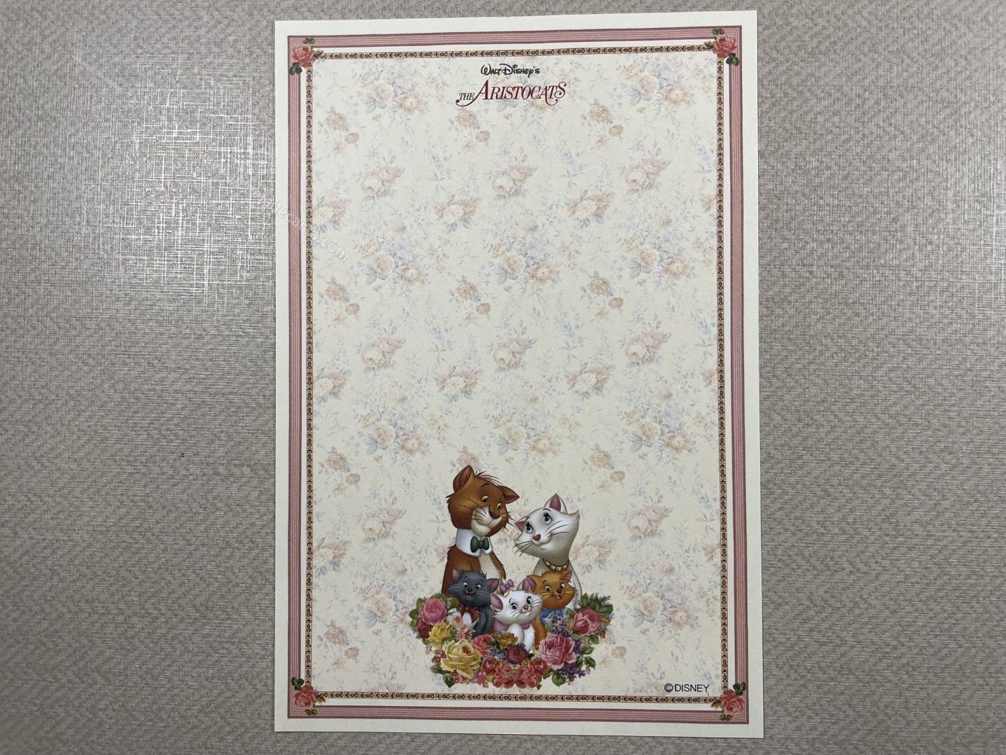 Papel de carta da The Aristocats (Marie), com 1 folha pequena (10cm larg X 15cm alt) da Disney.