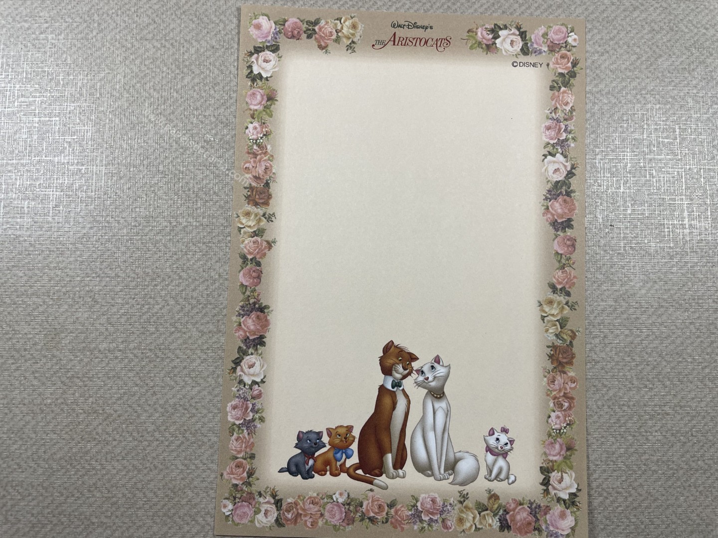 Papel de carta da The Aristocats (Marie), com 1 folha pequena (12cm larg X 17cm alt) da Disney.