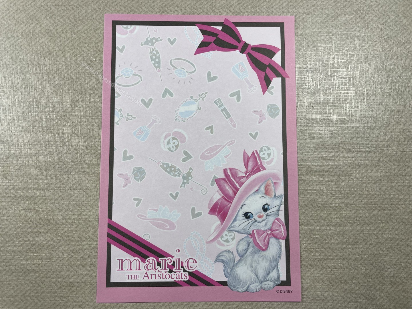 Papel de carta da The Aristocats (Marie), com 1 folha pequena (12cm larg X 17cm alt) da Disney.