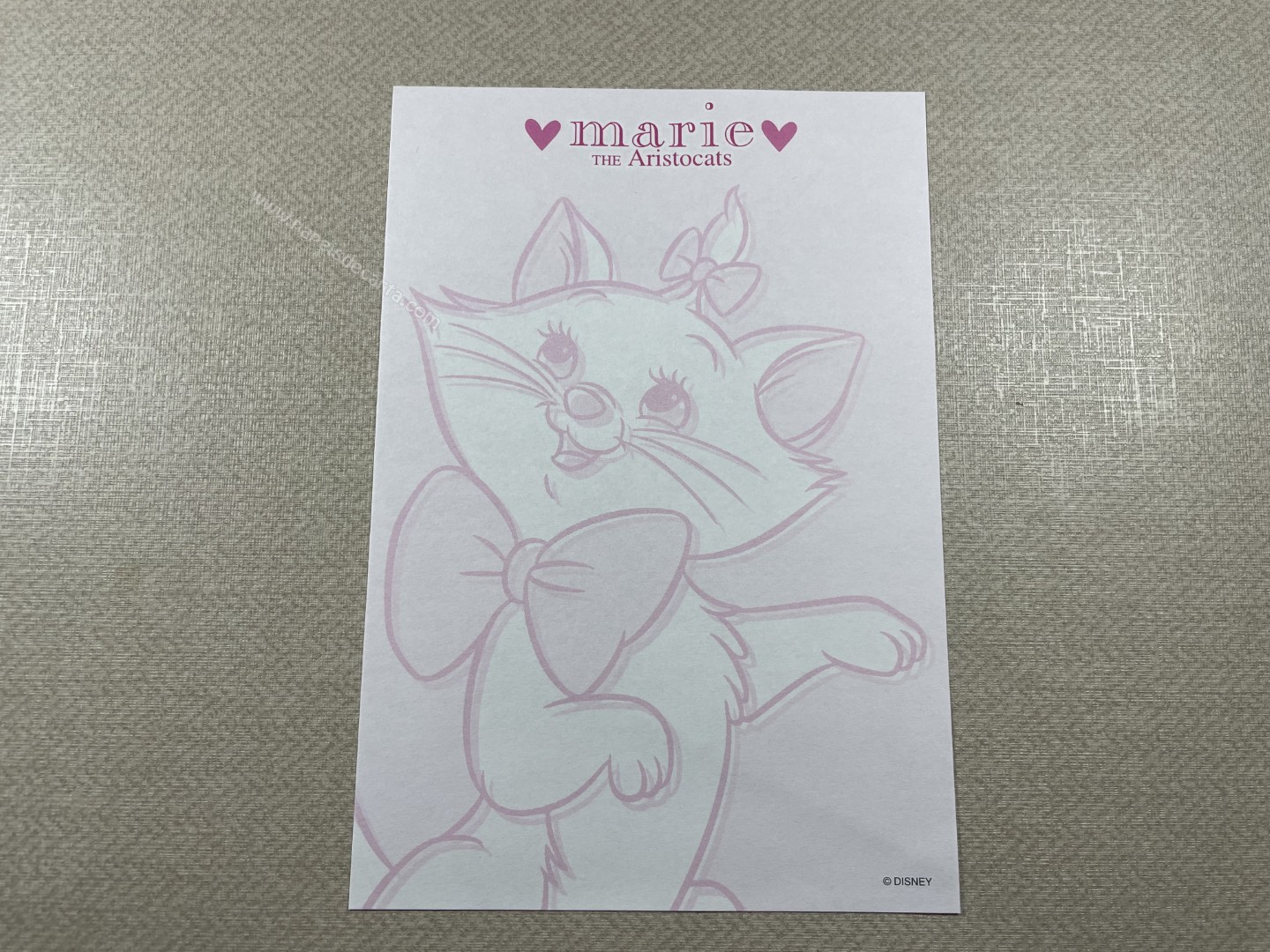 Papel de carta da The Aristocats (Marie), com 1 folha pequena (12cm larg X 17cm alt) da Disney.