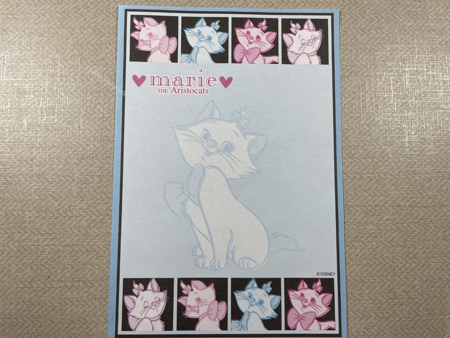 Papel de carta da The Aristocats (Marie), com 1 folha pequena (12cm larg X 17cm alt) da Disney.