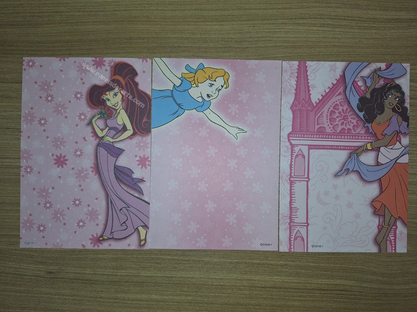 Lote de papel de carta pequeno, com 3 papéis diferentes da Disney Princess.
