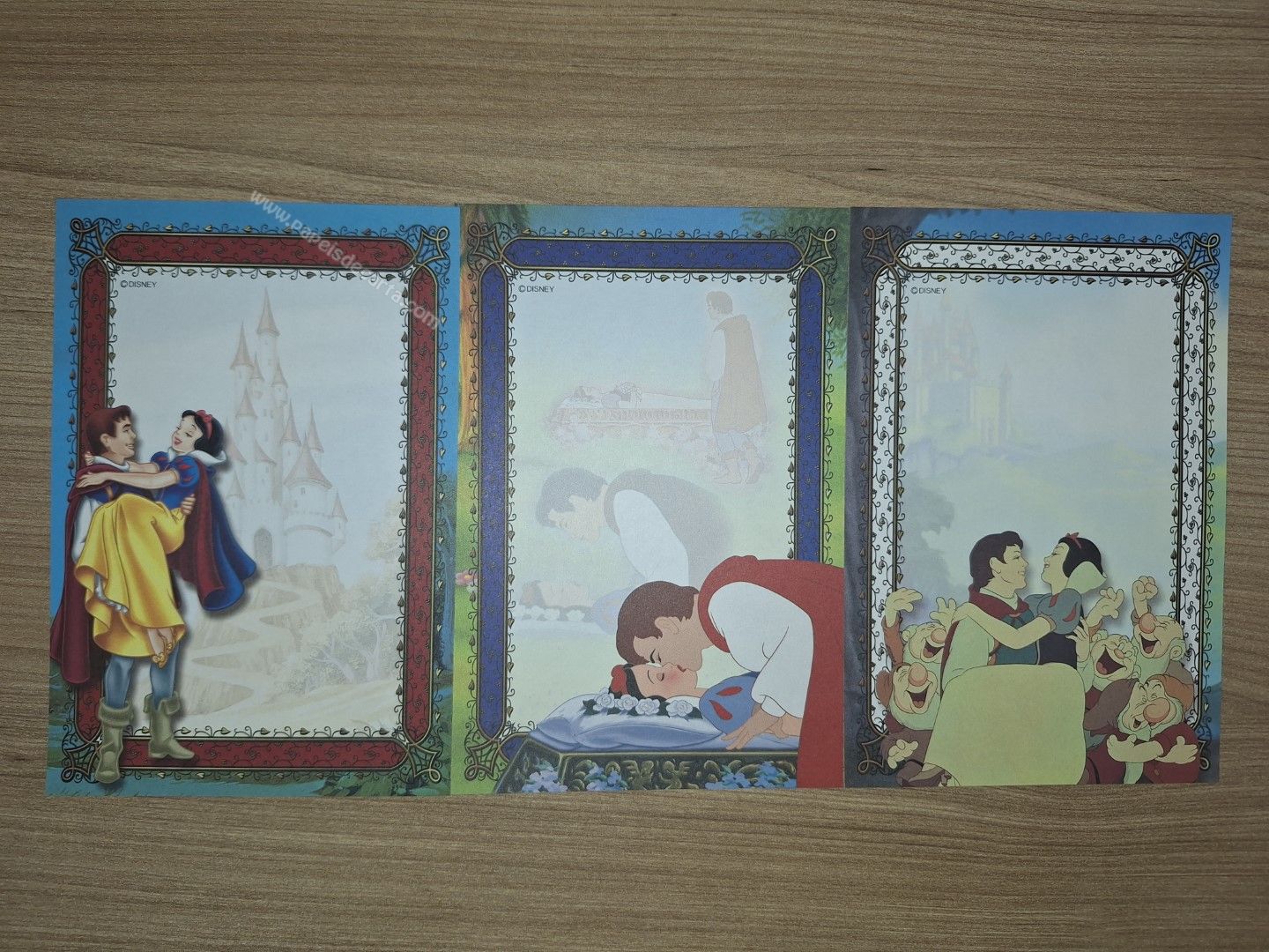 Lote de papel de carta pequeno, com 3 papéis diferentes da Disney Princess.