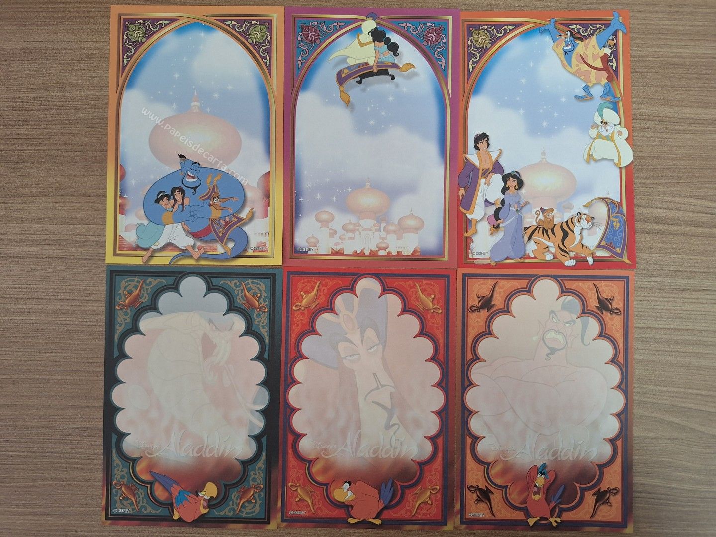 Lote com 6 papéis de carta, tamanho pequeno, princesas, do Aladdin, da Disney.