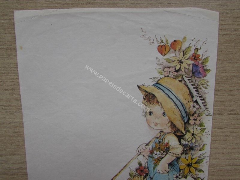 Papel de carta antigo, tamanho médio, de coleção não identificada. * Possui marca de dobra na parte de cima. Ver foto.*