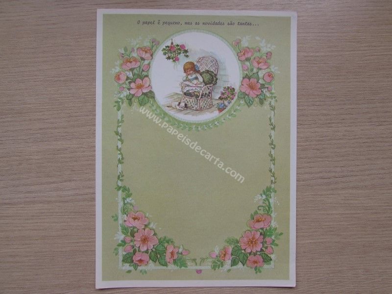 Papel de carta antigo, tamanho um pouco maior que o médio, de coleção não identificada.