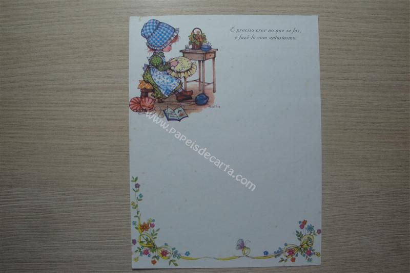 Papel de carta antigo, raro, tamanho médio, de coleção não identificada. Frase: É preciso crer no que se faz e fazê-lo com entusiasmo. Obs: O papel está com algumas manchas (de antigo).