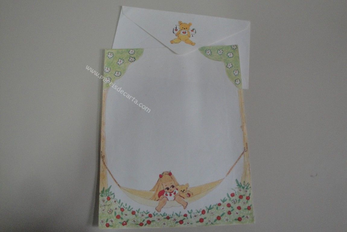 Papel de carta antigo com 1 folha e 1 envelope, tamanho um pouco maior que o médio, de coleção não identificada.