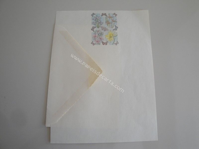 Papel de carta antigo com 1 folha tamanho médio e 1 envelope. *O envelope está grudado no papel*