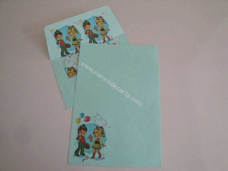 Papel de carta antigo com 1 folha tamanho médio e 1 envelope.