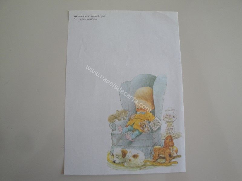 Papel de carta antigo com 1 folha tamanho médio. Possui a frase: "As vezes, um pouco de paz é o melhor remédio."