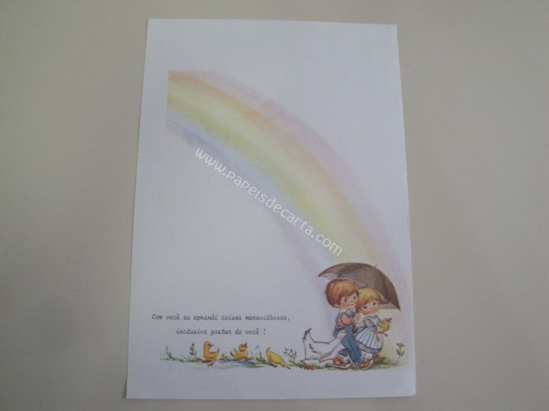 Papel de carta antigo com 1 folha tamanho médio. Possui a frase: Com você eu aprendi coisas maravilhosas, inclusive gostar de você!