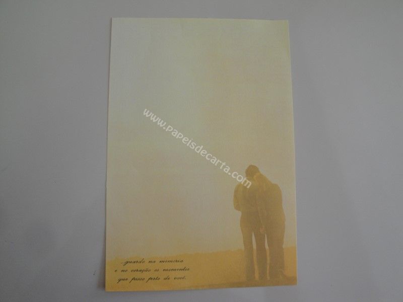 Papel de carta antigo com 1 folha tamanho médio. Possui a frase: ...guardo na memória e no coração os momentos que passo perto de você.