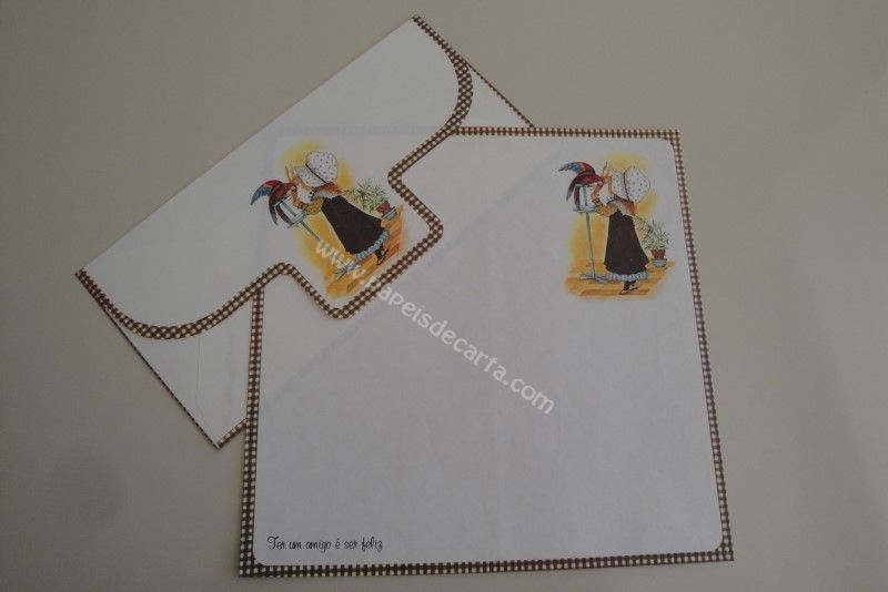 Papel de carta antigo com 1 folha e um envelope tamanho um pouco maior que o médio.